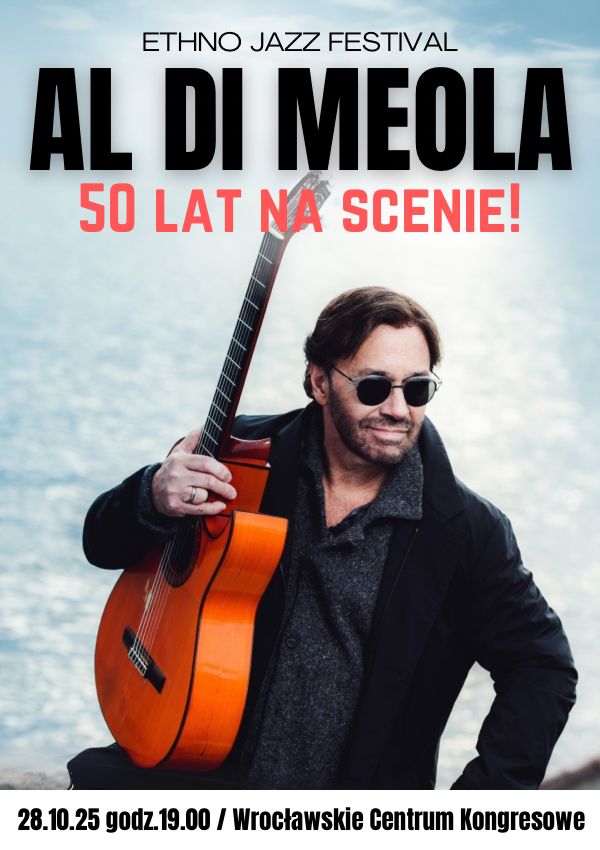 AL DI MEOLA, jeden z najwybitniejszych gitarzystów świata powraca do Wrocławia na zaproszenie Ethno Jazz Festival. Wraz za swoim Acoustic Trio wystąpi 28 października we Wrocławskim Centrum Kongresowym w ramach trasy z okazji 50-lecia pracy artystycznej.